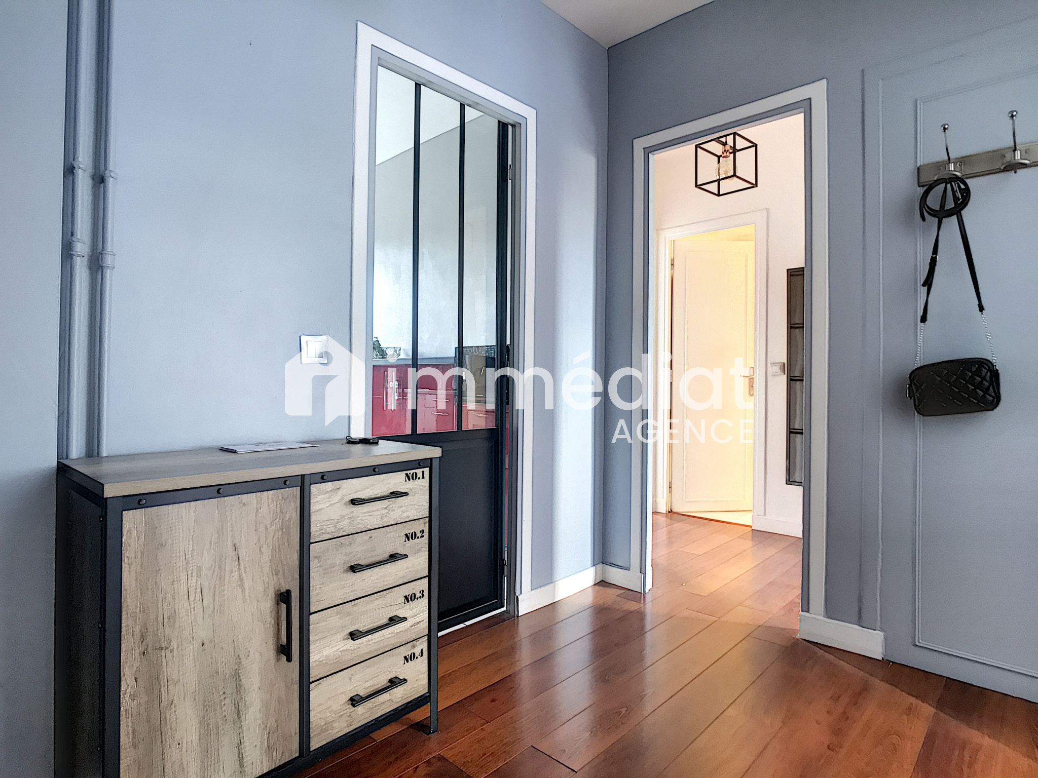 Il est composé d'une vaste entrée, un séjour avec balcon, une cuisine séparée aménagée et équipée, deux grandes chambres avec placard, un dégagement avec placard et une salle de bains avec WC et une loggia.
