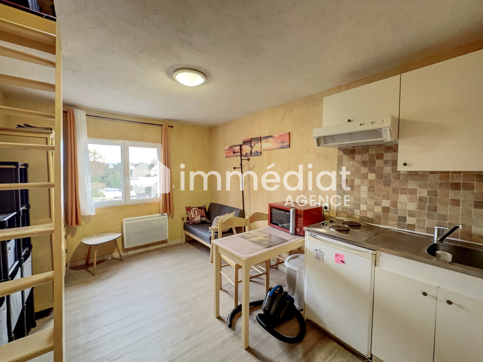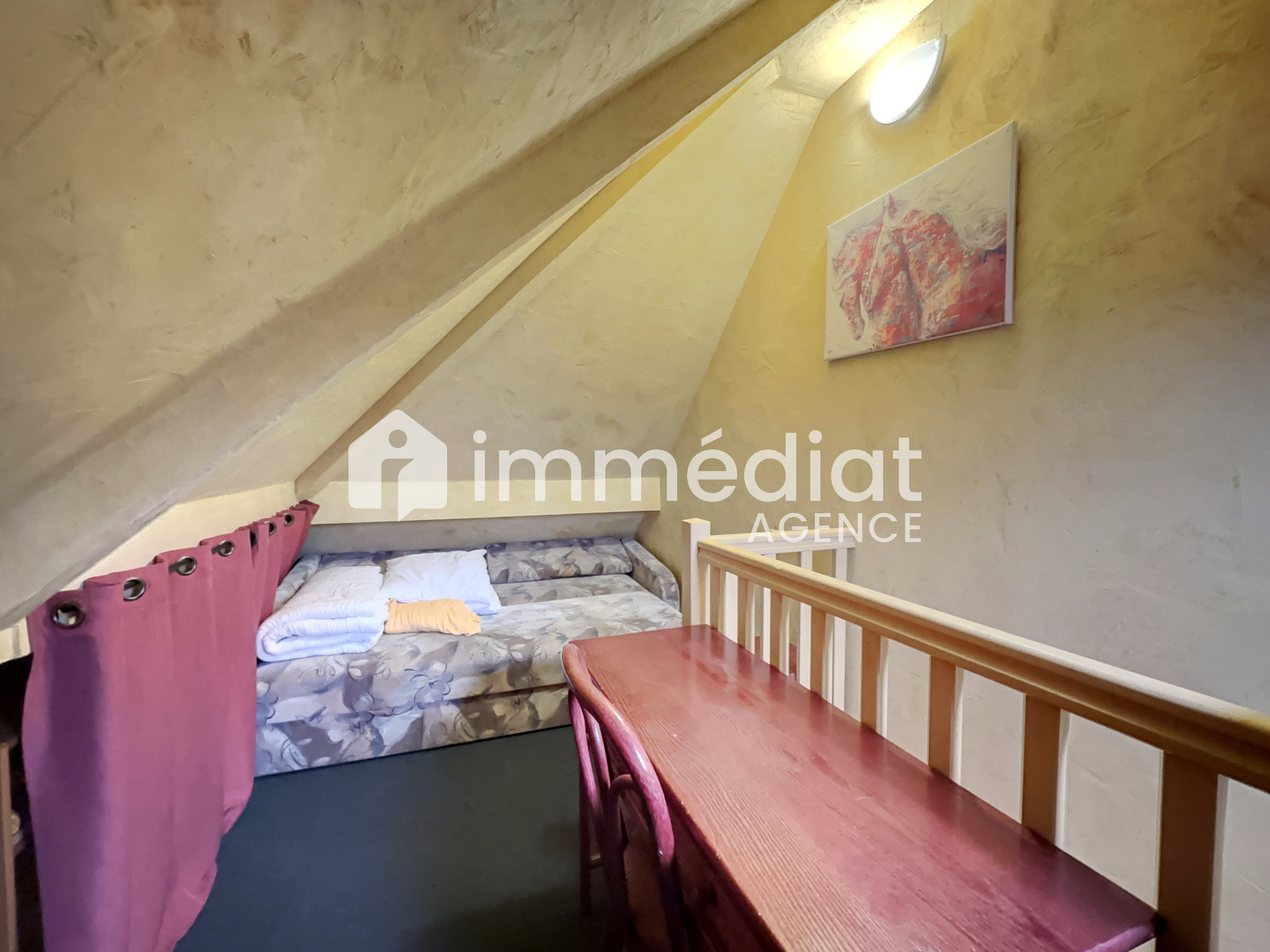 Au 1er étage et 2ème étage d'un petit bâtiment récent dans une résidence sécurisée (portail + visiophone), un appartement calme de type studio en duplex de 22,75 m², loué meublé composé :