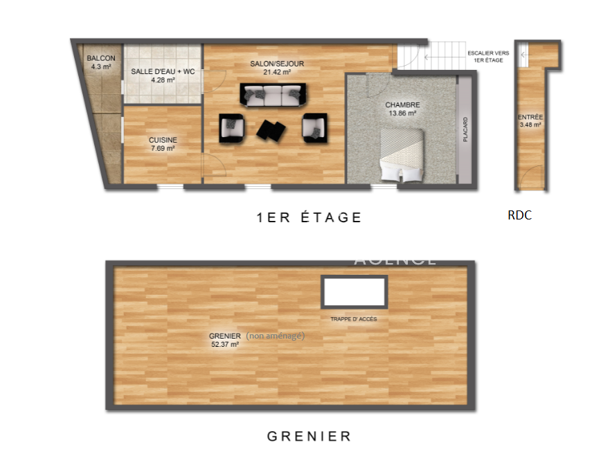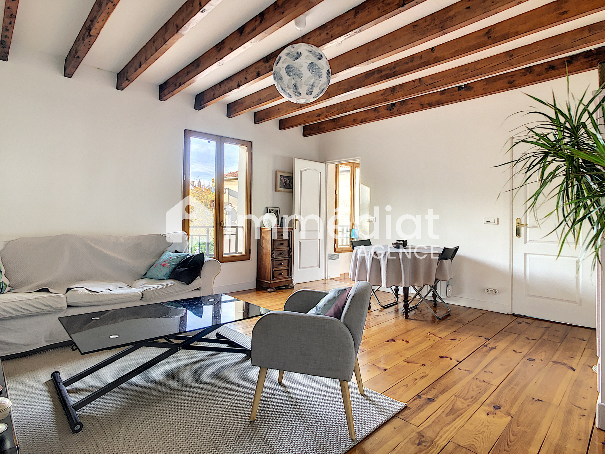 Rueil-Malmaison (92500)Très Charmant 2 pièces de + 50m² avec poutres et parquet, au sein d'une petite copropriété de 2 lots, en 1er et dernier étage, comprenant : entrée, séjour de 21m² exposé plein Ouest, cuisine aménagée (voir équipée) ouvrant sur balcon, grande chambre avec placard, sde et wc, coin rangement + grenier de 52m² au sol (hauteur maximale de 1,60m environ). Le tout en très bon état, à Rueil-Malmaison, sur le quartier de Buzenval, à 2 pas du marché, des bus et de la forêt. Un vrai coup de coeur! Visite virtuelle disponible en direct avec le/la conseiller(e).
