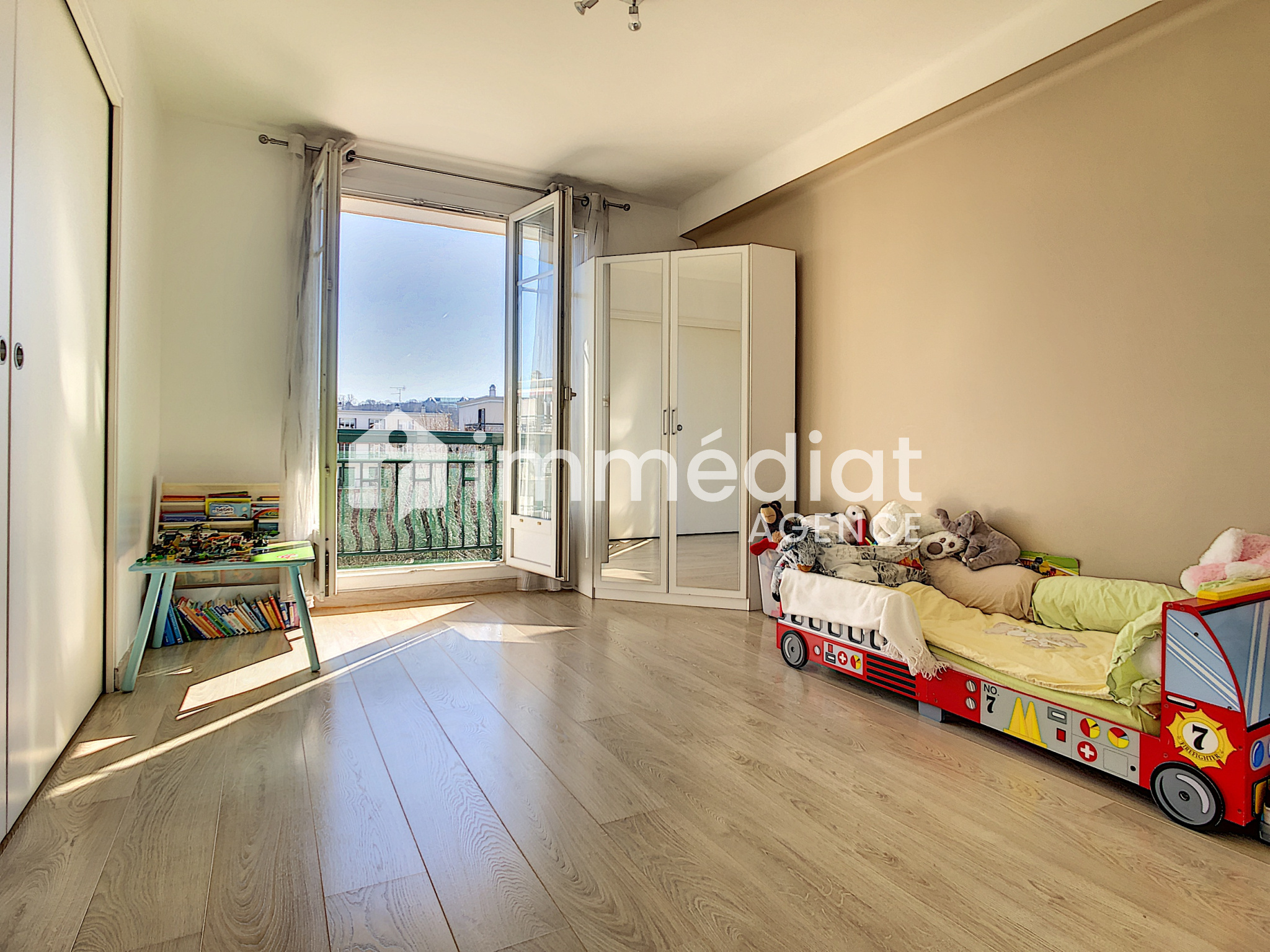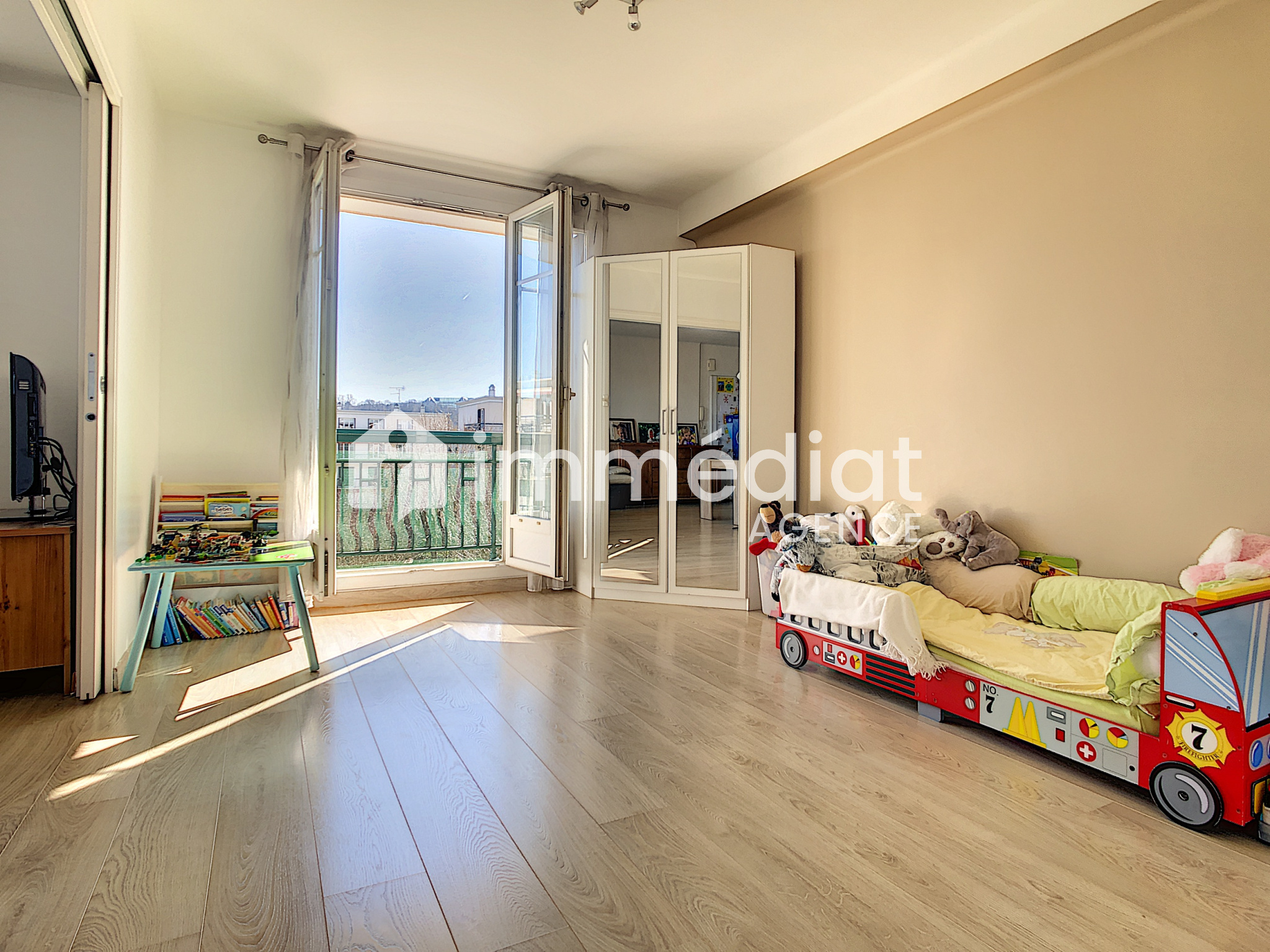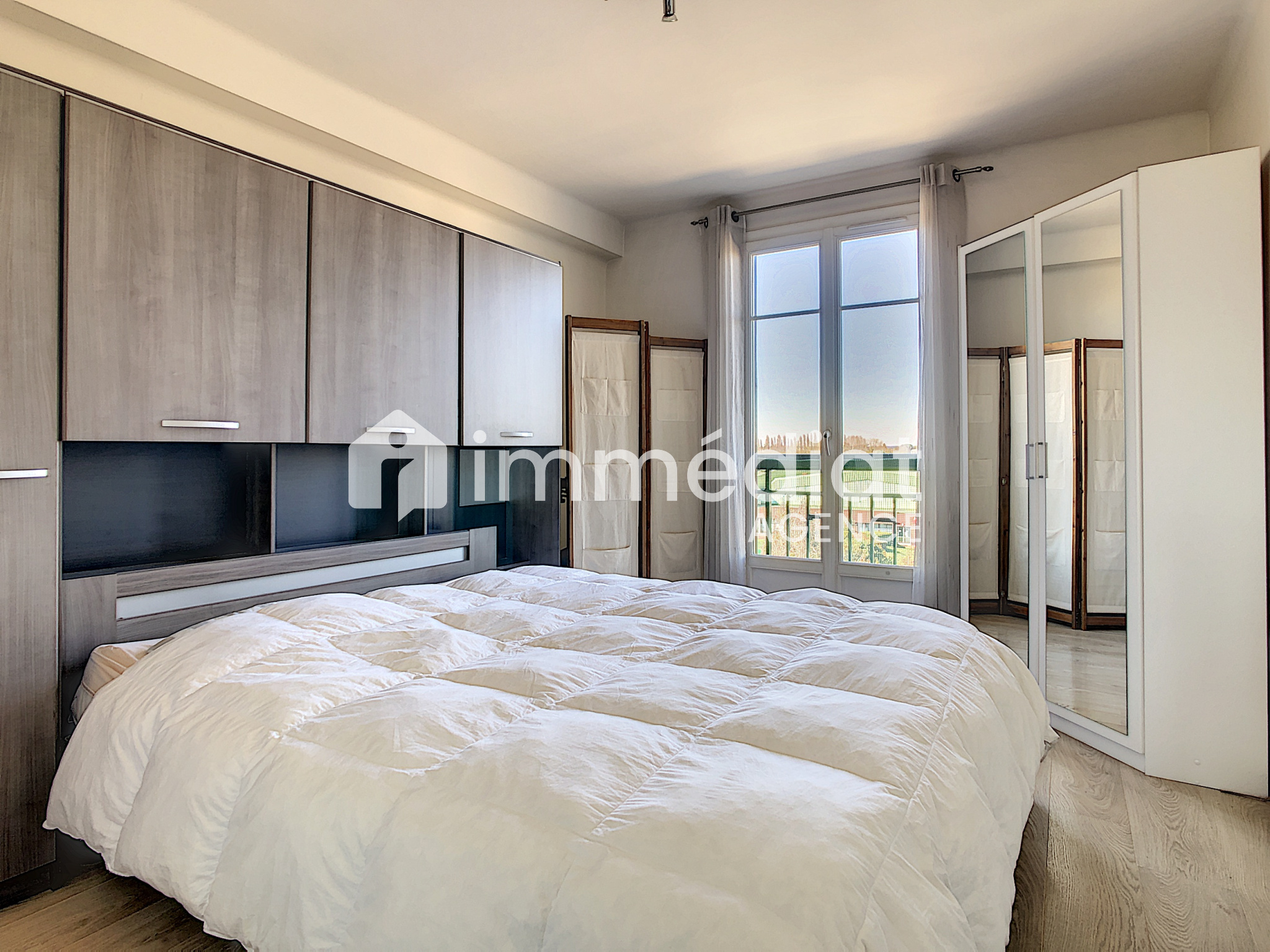 Rueil-Malmaison (92500)A 15min à pieds du Centre-ville, au sein d'une résidence sécurisée, avec parc intérieur et jeux pour enfants, appartement de 3 pièces prinicipales, de 62m² environ, en étage et vous offrant : entrée, séjour ouvrant sur balcon avec vue sur jardin, cuisine aménagée ouvrant sur un 2nd balcon, 2 grandes chambres avec placard, sdb, wc séparés, cave. L'appartement se transforme aisément en grand 2 pièces avec double séjour + 1 chambre grâce à un système de portes coulissantes. Bon état, luminosité, calme et vue dégagée sont des atouts indéniables de cet appartement. Le tout à 2 pas des crèches/écoles de la Malmaison, commerces, bords de Seine ainsi que des transports vers la Défense.