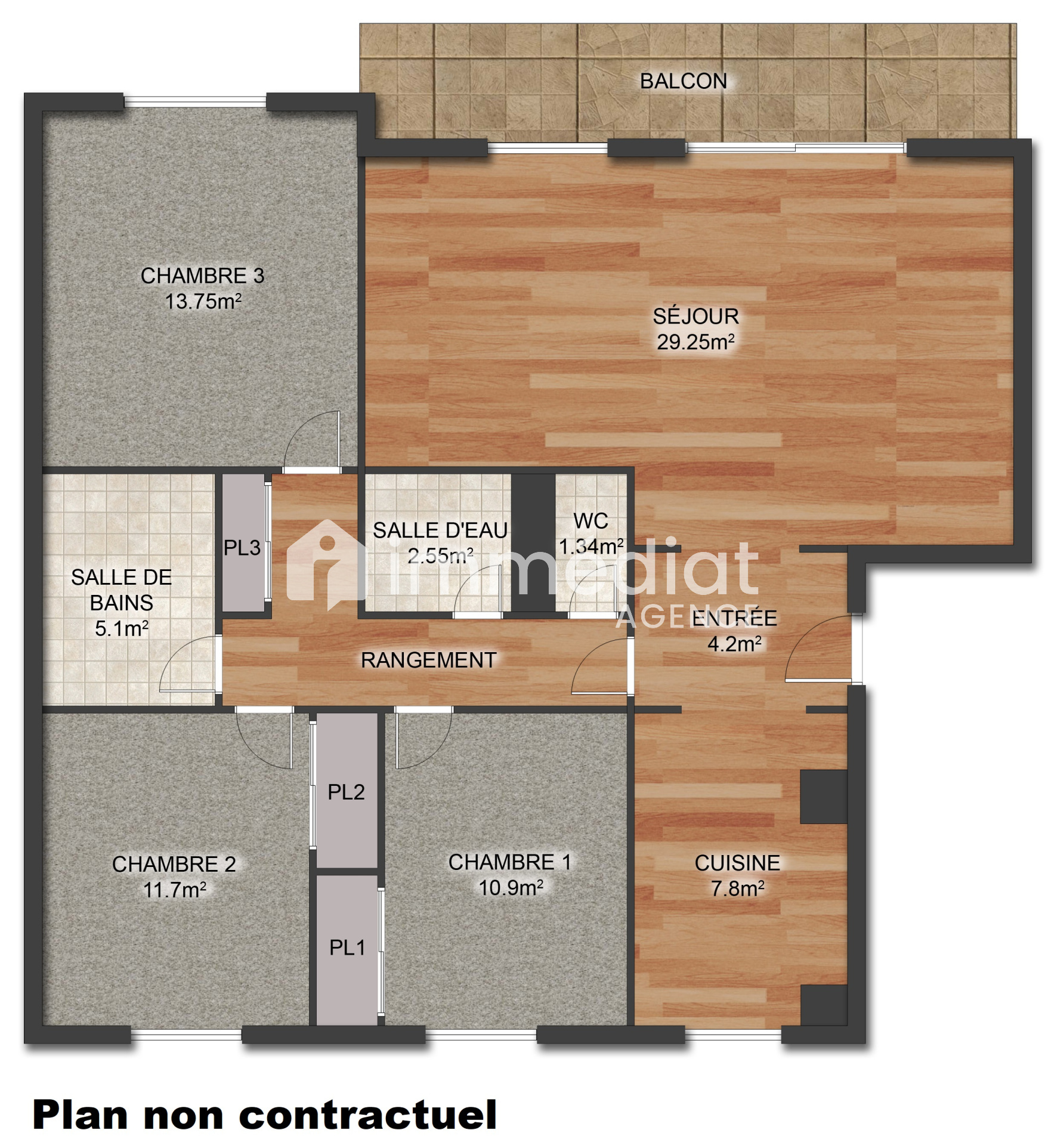 Appartement familiale de 93.49 M² loi carrez très bien organisé sans perte d'espace comprenant: