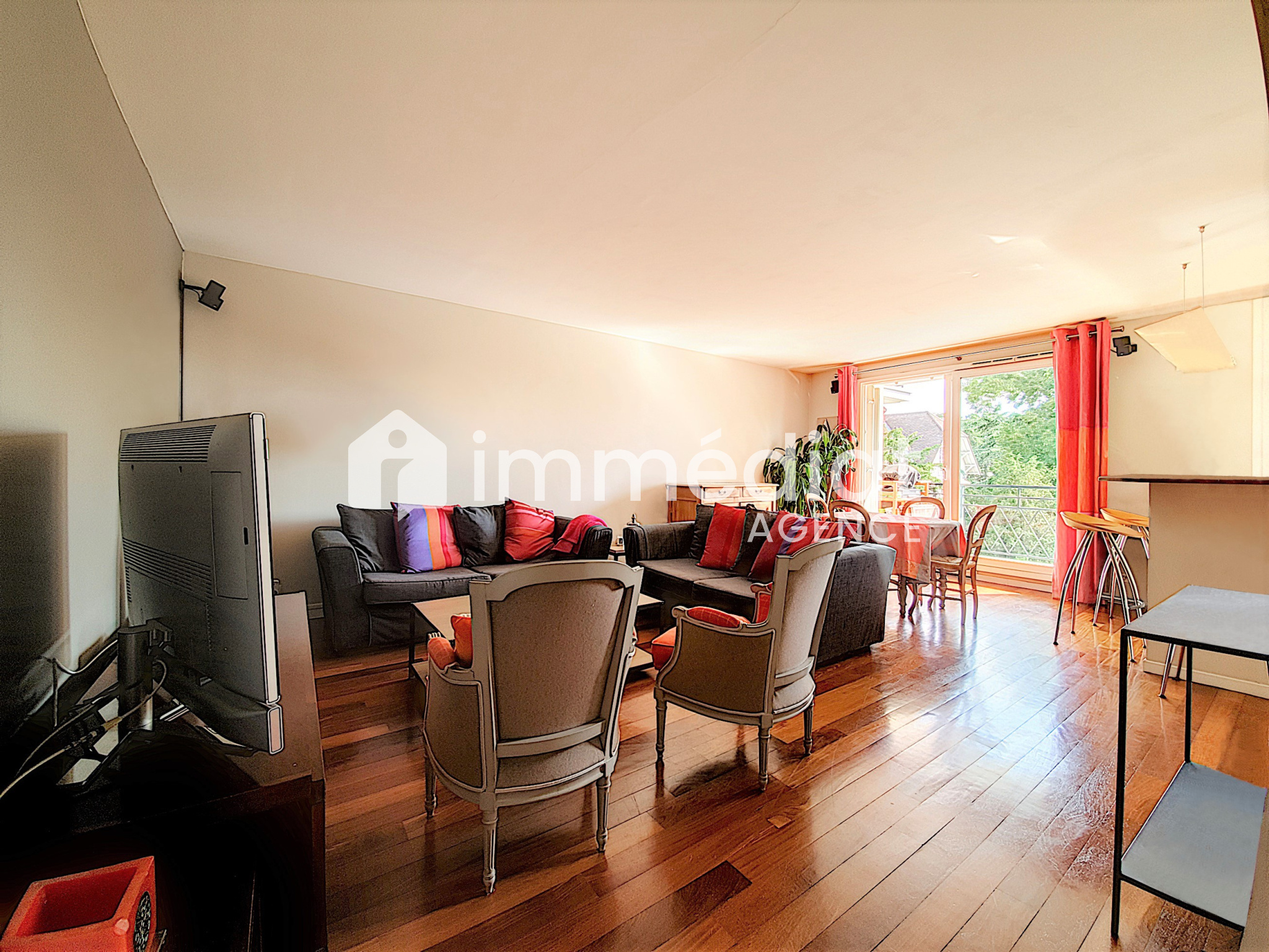 Appartement de 94.38M² loi carrez comprenant : Grande pièce à vivre avec cuisine ouverte / vue dégagée et verdoyante / 1 entrée avec placard / 3 chambres / 1 salle de bain / 1 salle d'éau / 2 WC / 1 buanderie / Très nombreux placards / 2 parkings en sous-sol / 1 cave / ascenseur / 1 large balcon (table 4 à 5 personnes) / résidence moderne et sécurisée de 2000 / Ravalement en septembre voté et payé / Proche écoles et commerces au pied de la résidence / Calme absolu et Lumineux / aucun vis à vis / Résidence très recherchée.