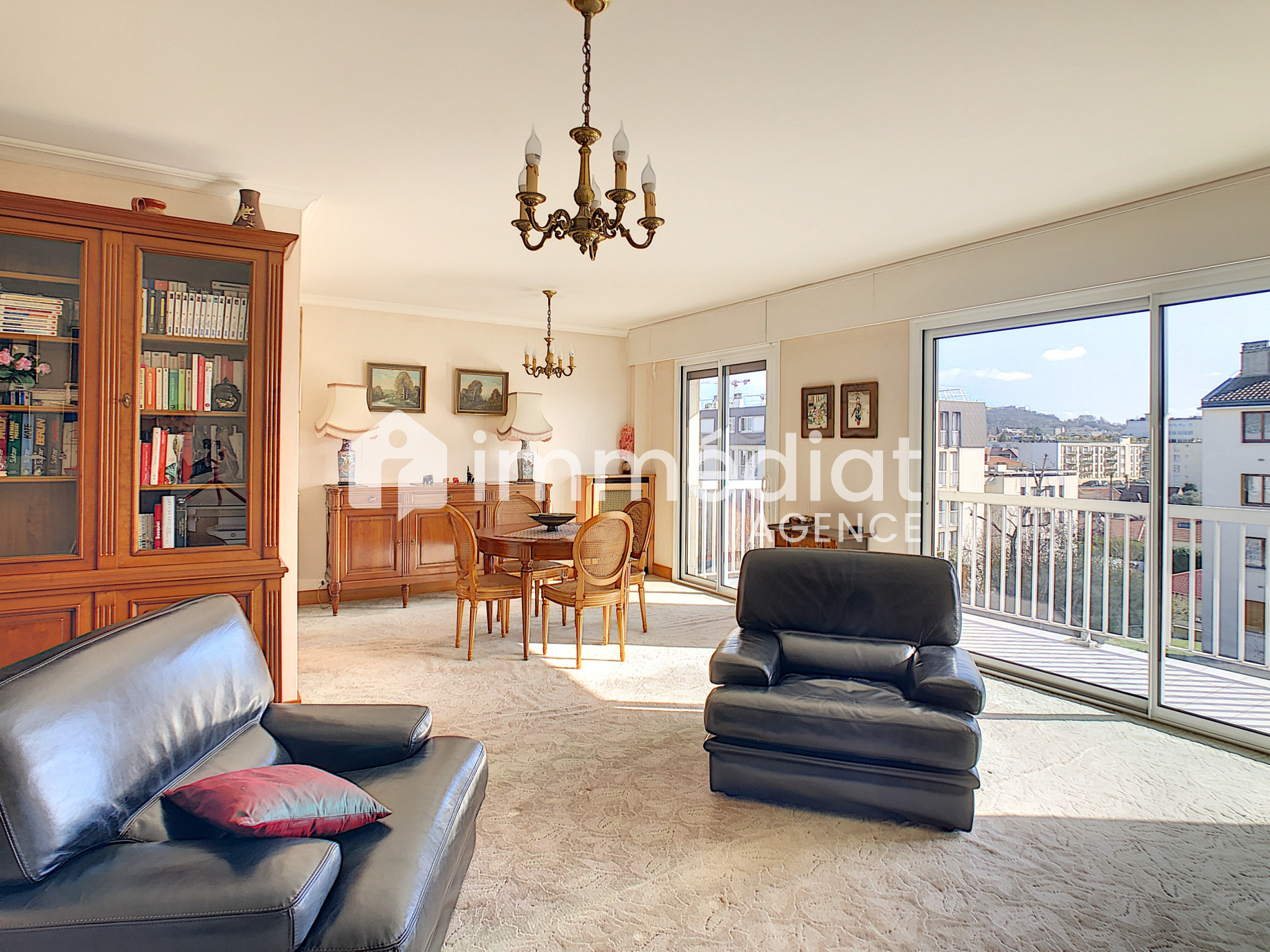 Haut de Rueil-Malmaison, à proximité de Suresnes, appartement de 4 pièces principales, au 3ème étage avec ascenseur, comprenant : entrée avec placard, double séjour exposé Est avec vue sur Mont-Valérien et ouvrant sur balcon, cuisine, 2 chambres (3ème possible), salle de bains, cagibi, wc séparés, dégagement avec placard. Appartement à remettre aux goûts du jour offrant luminosité, espaces et calme.