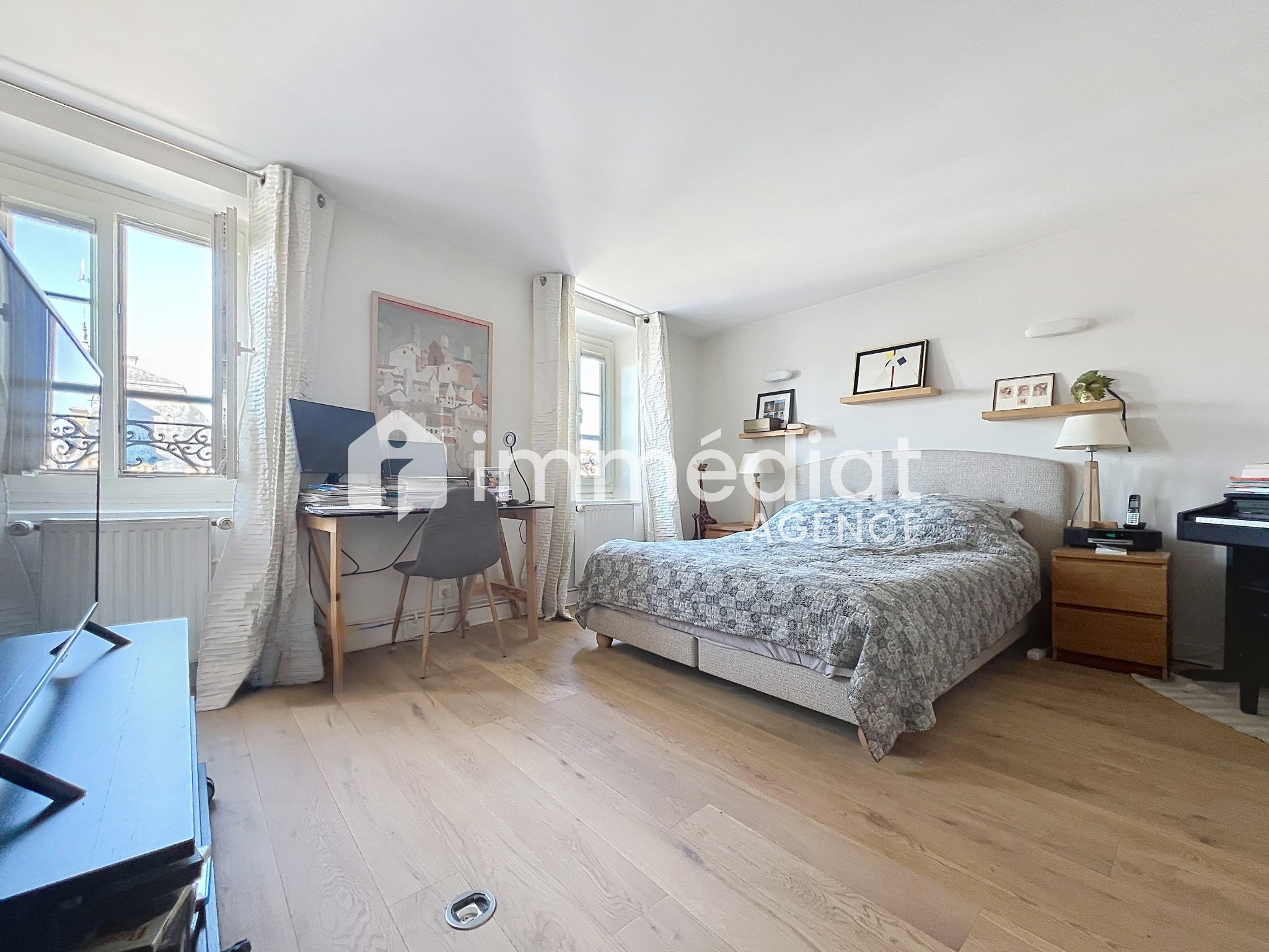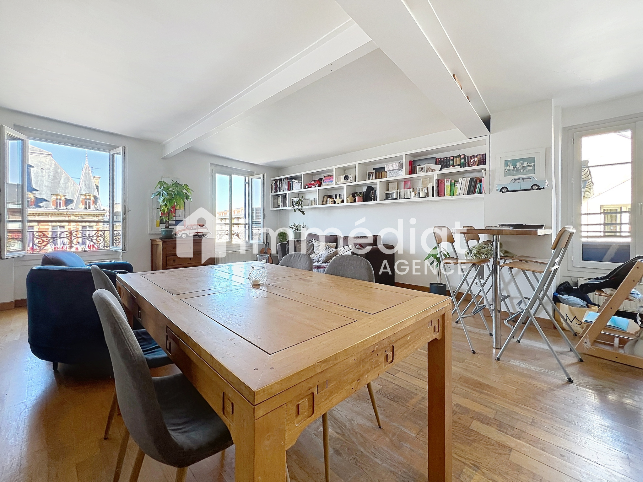 Au cœur de Ville, bel appartement en duplex d’environ 120m² alliant le confort moderne et le charme de l’ancien. Situé au 3ème et 4ème et dernier étage d’un immeuble ancien, il se compose d’une entrée, un grand séjour-salle à manger avec vue magnifique sur l’ancienne mairie de Rueil-Malmaison , une cuisine séparée et équipée, dégagement vers 2 grandes chambres (13 m² et 17 m²) un WC, une salle de bains. Un escalier dégagement avec placard : une suite parentale avec une chambre de 25m², une salle de bains et un WC.