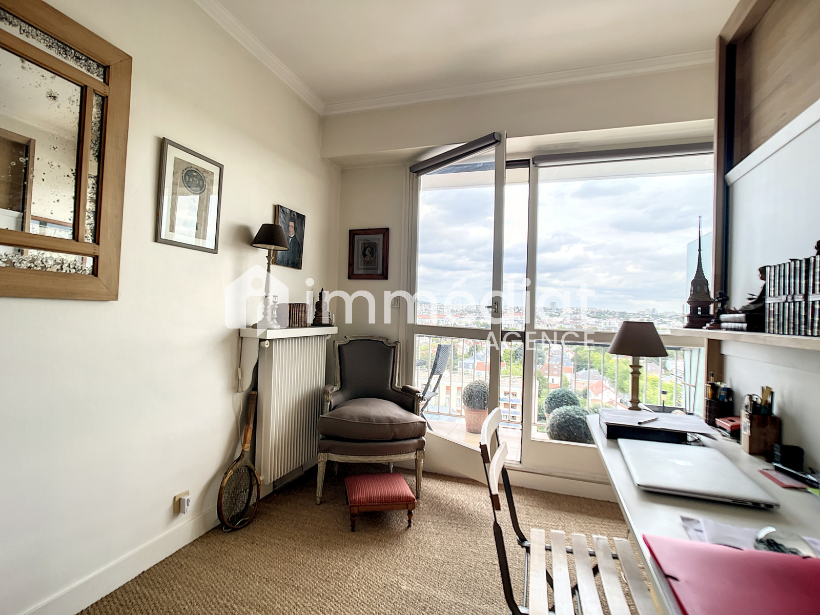 Rueil-Malmaison (92500)Au pied du RER A, des commerces, et des écoles : Moins d'un quart d'heure du centre-ville, Résidence de bon standing avec ascenseur, bénéficiant d'un ravalement en 2024/2025, reliée à la géothermie (DPE C). cet APPARTEMENT de 4 pièces principales offre une vue imprénable à 180° sur La Défense, le Mont-Valérien, le Bois de St CUCUFA....