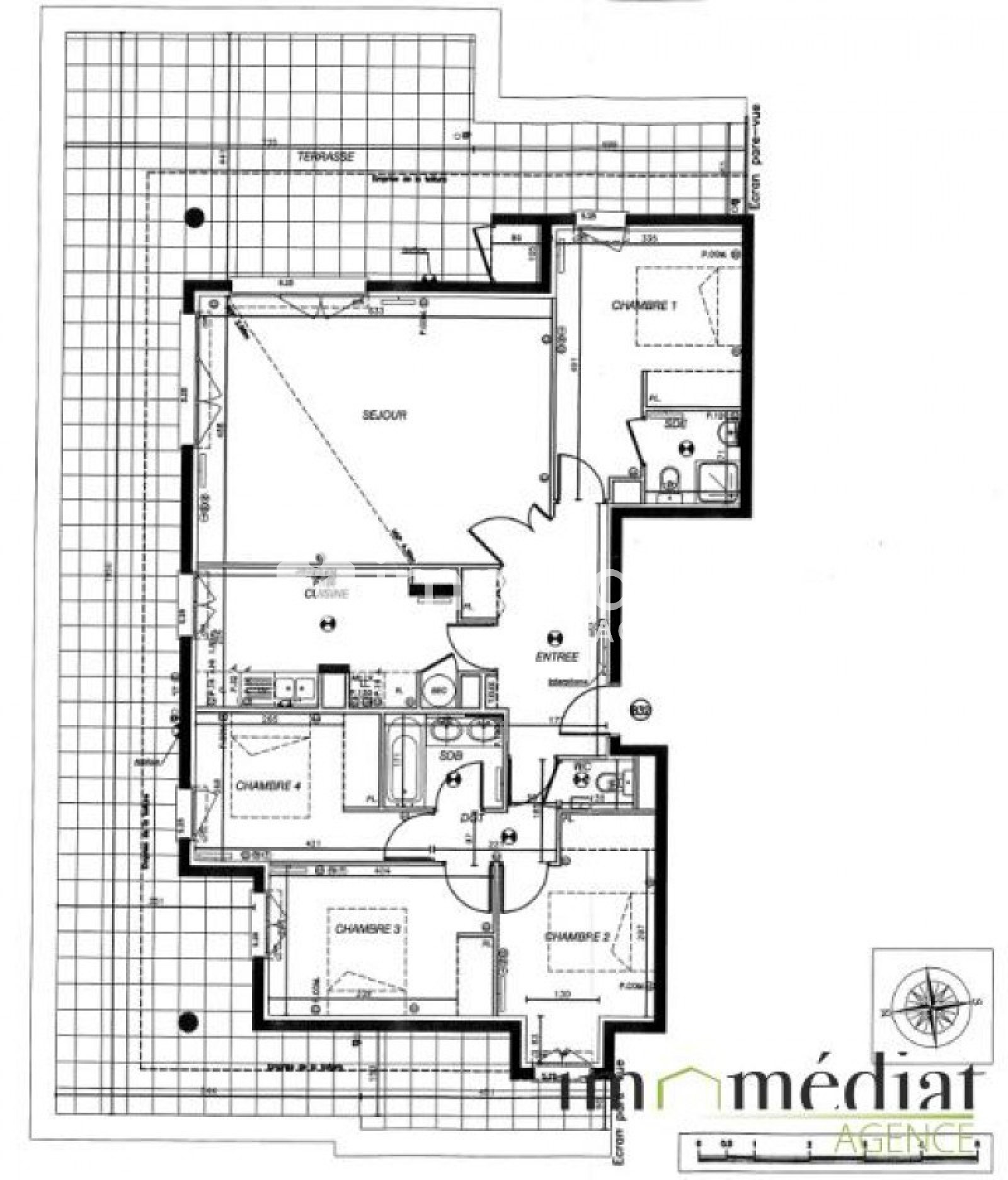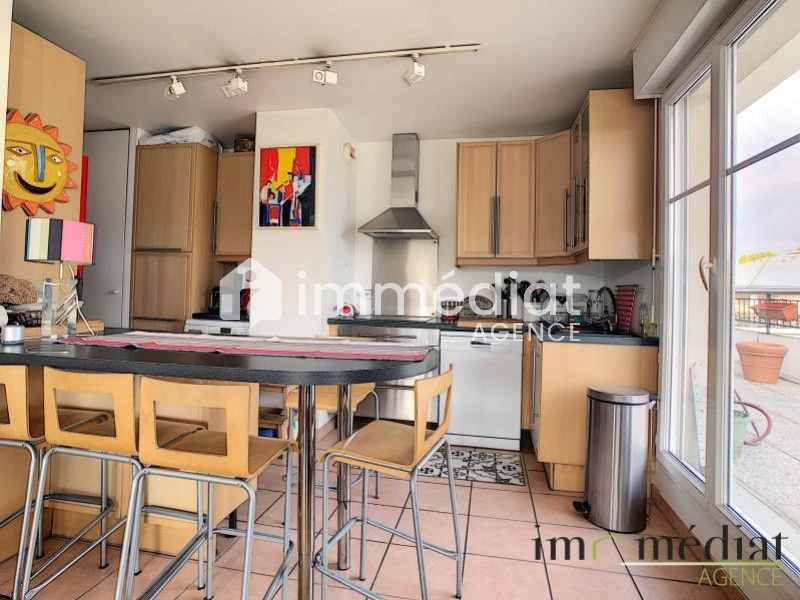 Appartement 5 pièces en Dernier étage avec ascenseur + Terrasse, situé à deux pas de l'école Charles Péguy, au sein d'une résidence de 2004, de très bon standing, offrant : entrée, cuisine US semi-équipée ouvrant sur grand séjour (plafond Cathédral) donnant accès à une terrasse de 87,80m², chambre parentale avec sde et wc, 3 chambres supplémentaires de l'autre côté de l'appartement avec sdb et wc séparés. Toutes les pièces donnent accès à la terrasse. 2 parkings en sous-sol, cave, triple exposition !