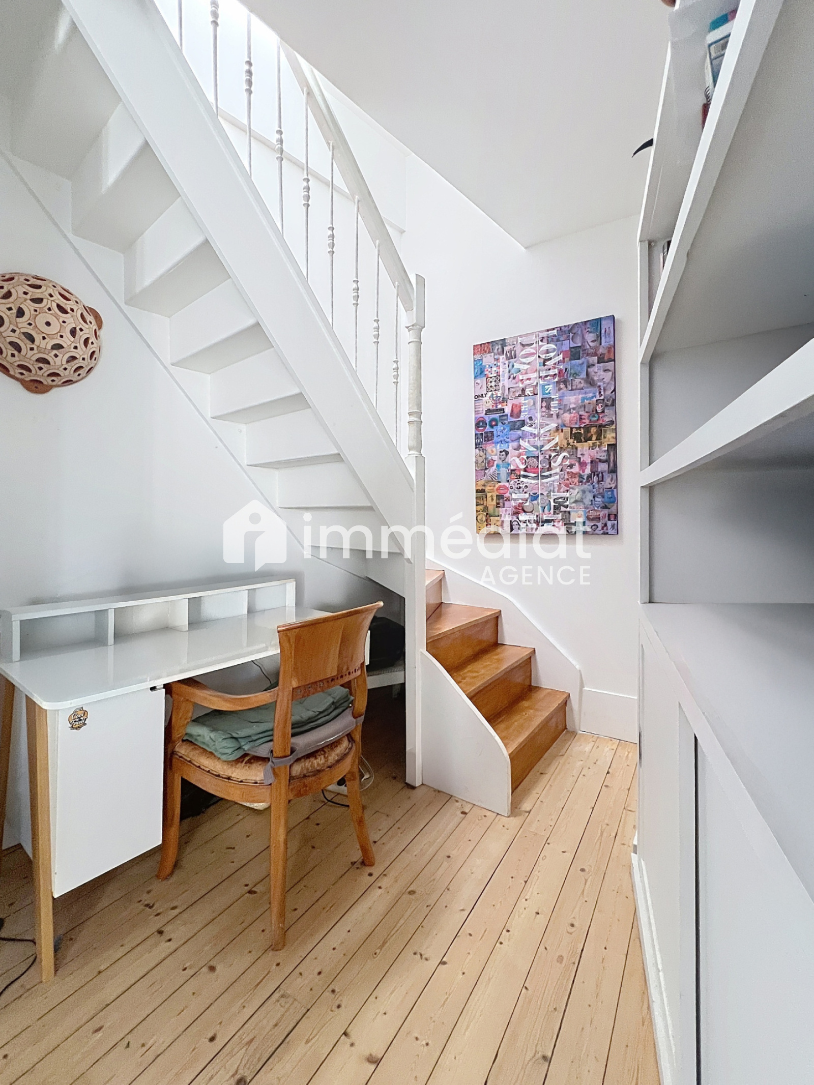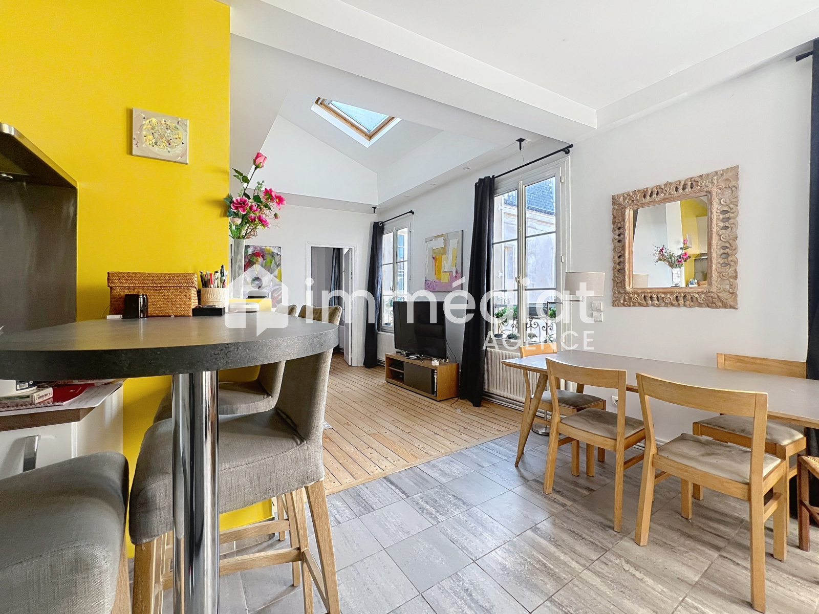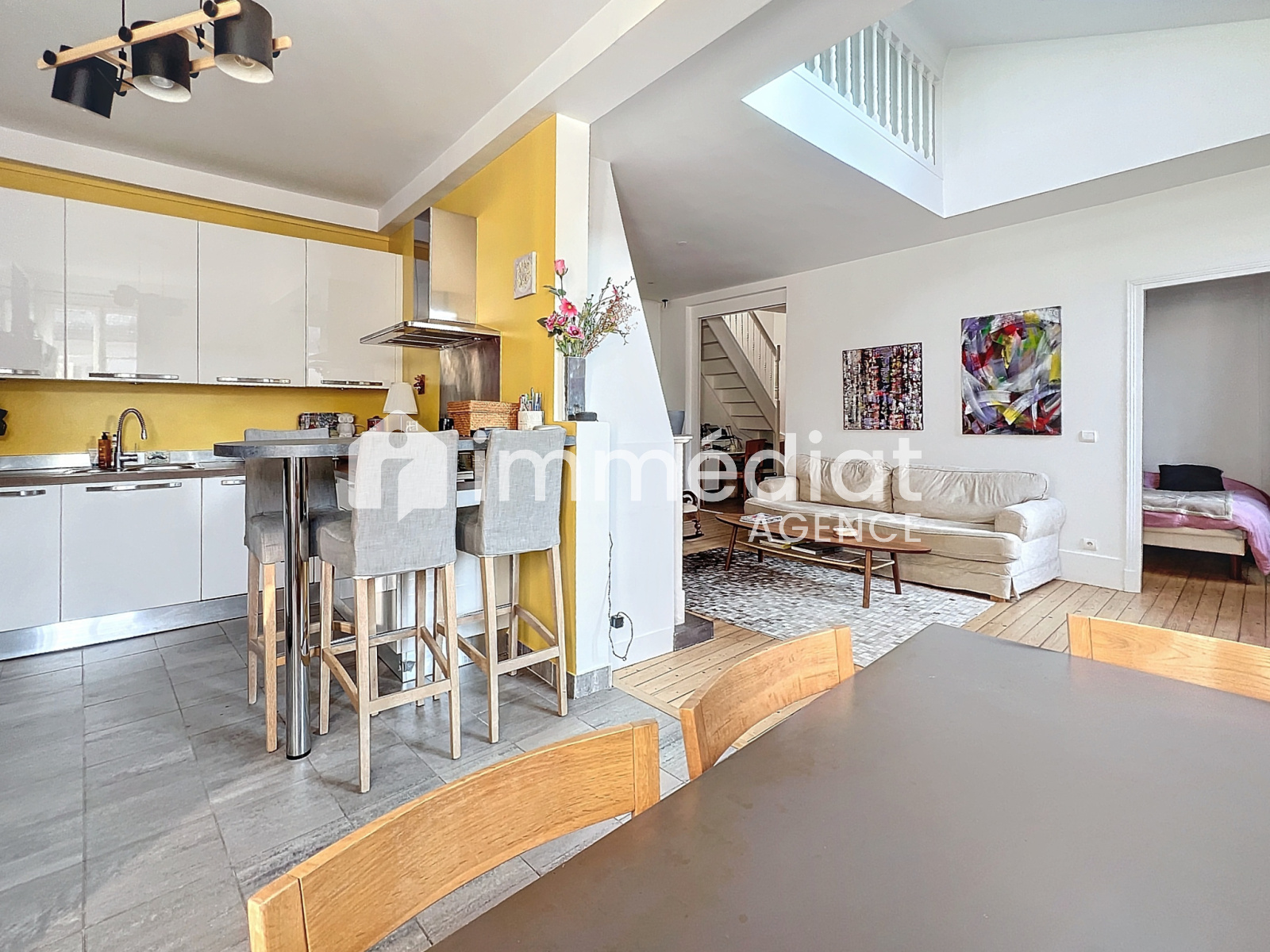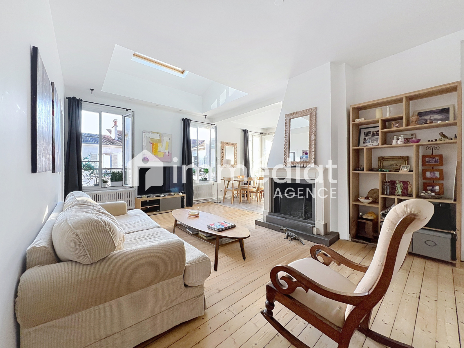 Rueil-Malmaison (92500)Place de l’église, à l’abris des tumultes de la Ville, au sein d’un immeuble ancien, bel appartement en duplex de 128m² au sol, et 85m² baigné de lumière, orienté sud-ouest. Il est composé d’une entrée, d’une cuisine dinatoire semi-ouverte sur le salon, agrémenté d’une cheminée à foyer ouvert, une chambre, une salle de bains (avec coin buanderie) et WC, dégagement vers un espace bureau avec l’escalier menant à l’étage, qui distribue une mezzanine (bureau), un bureau fermé (ou une petite chambre d’enfant), une chambre, une salle d’eau, un WC séparé. Une cave et un cabanon.
