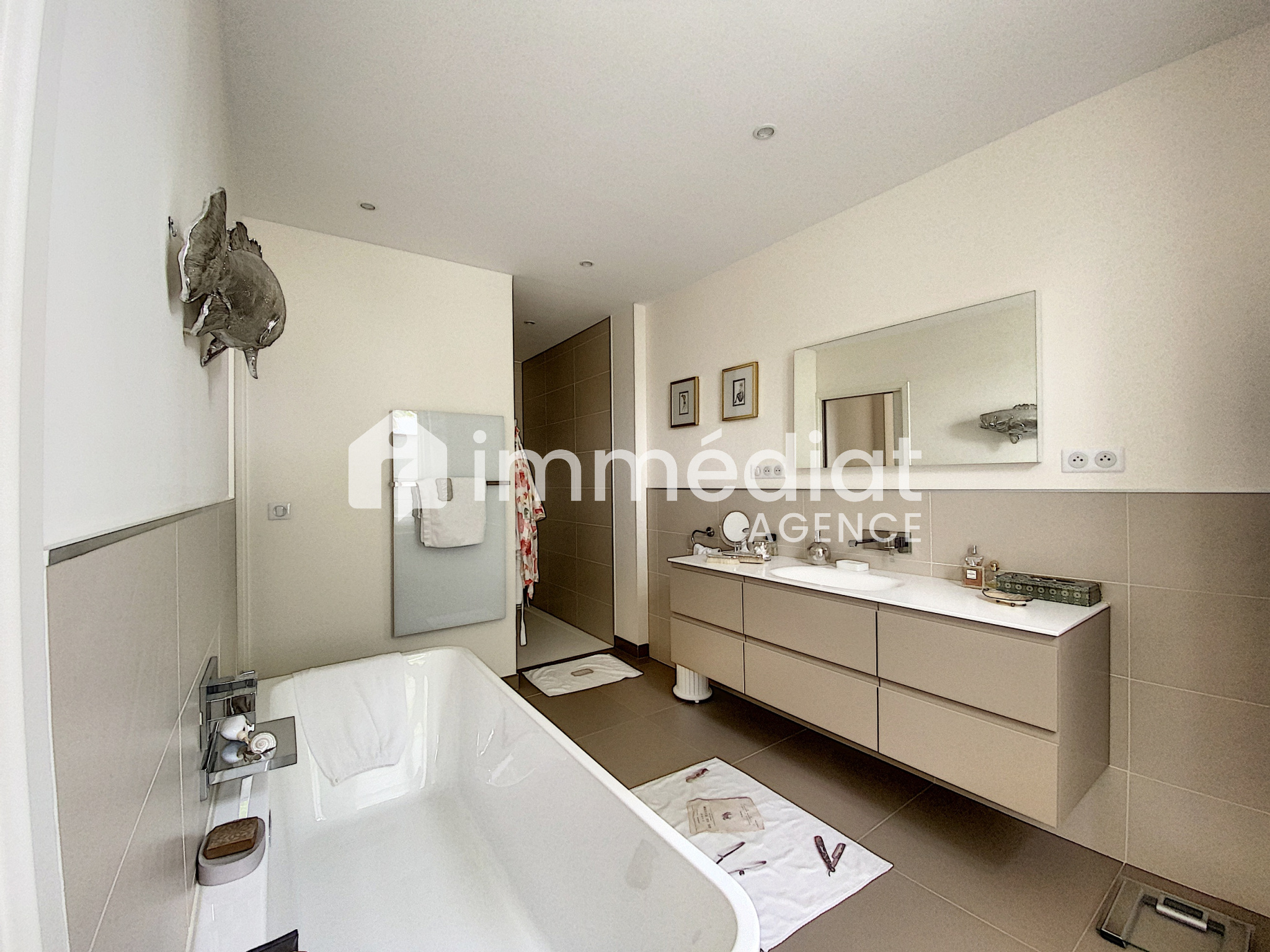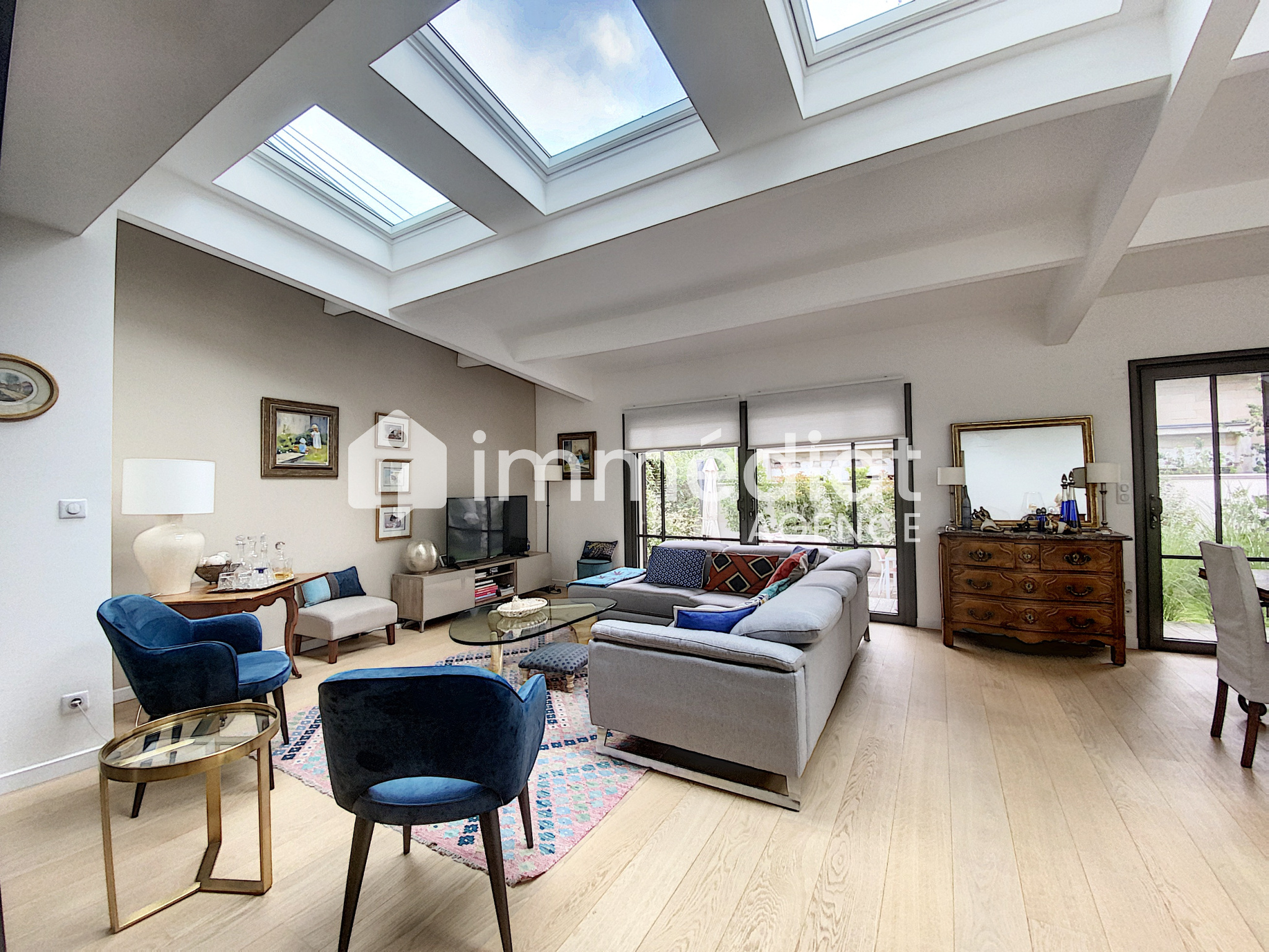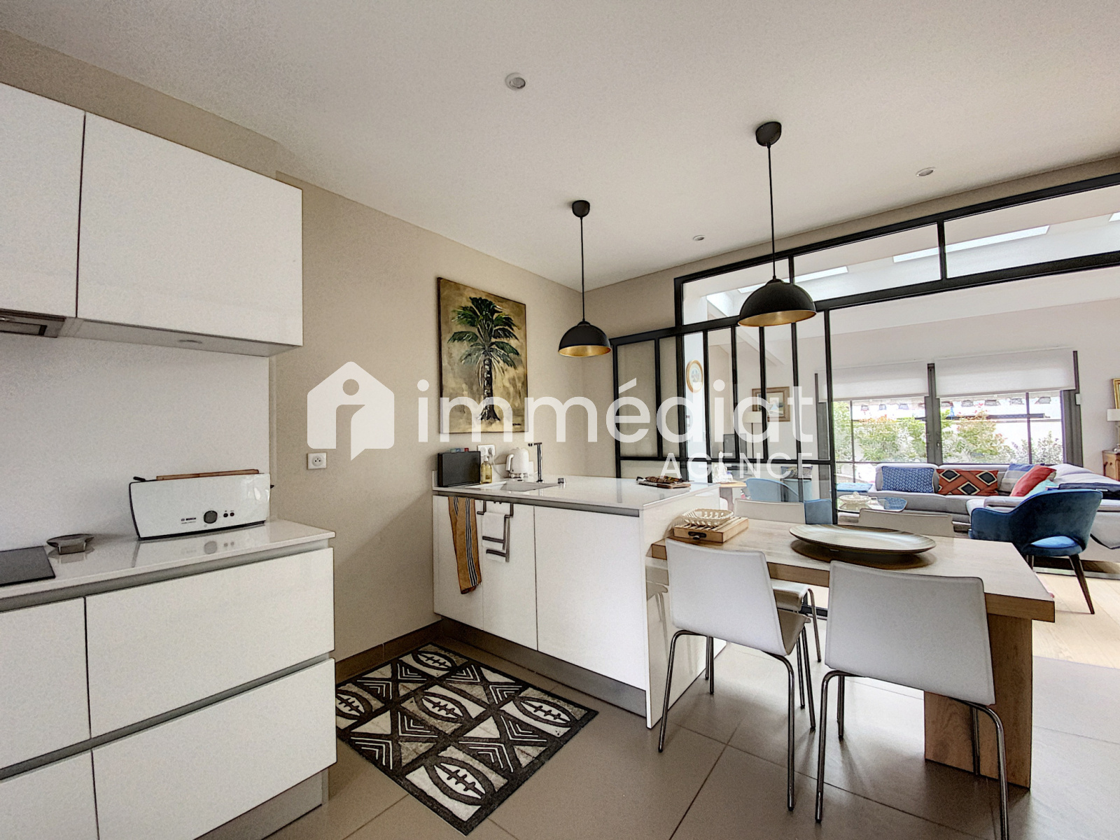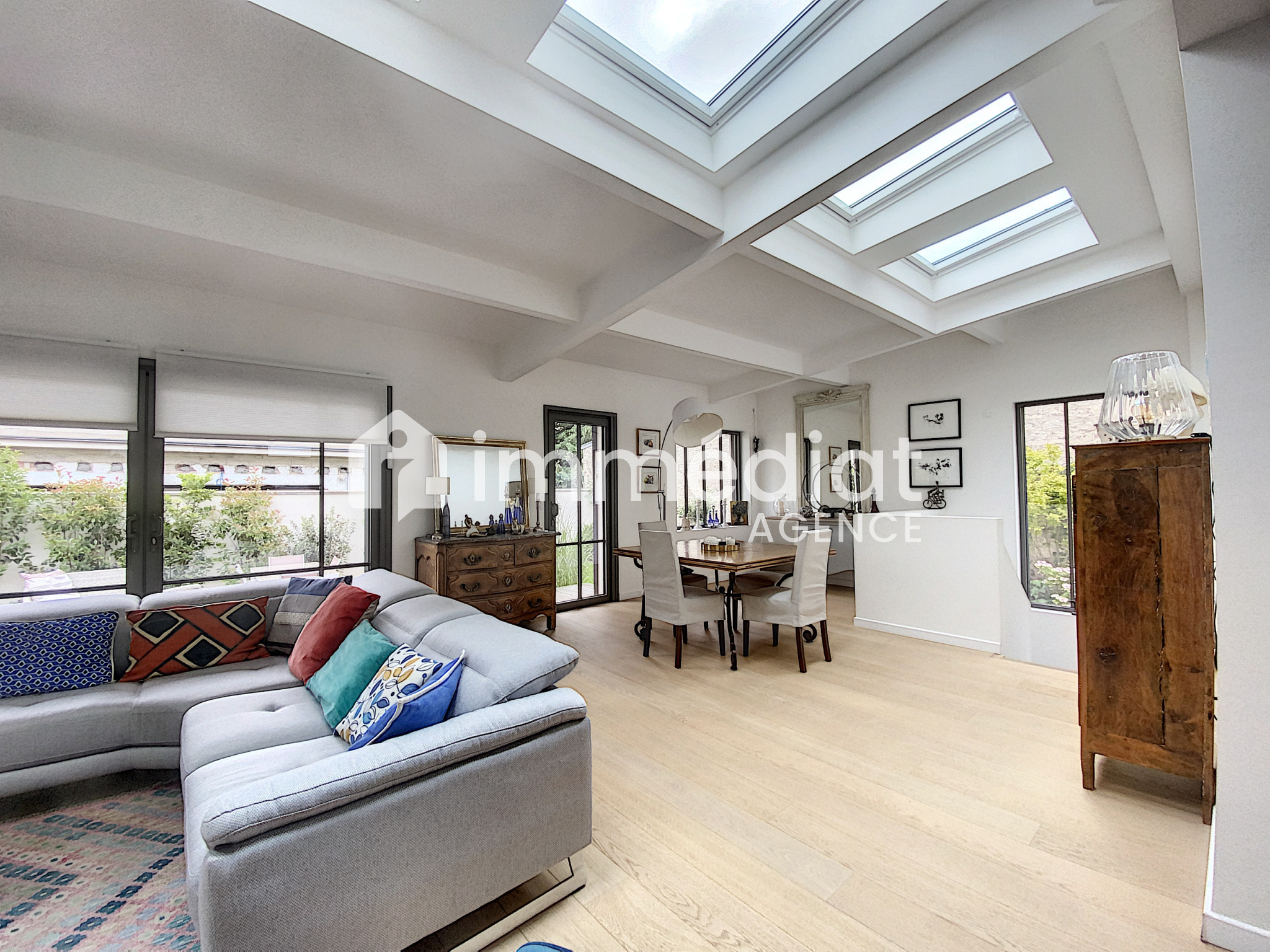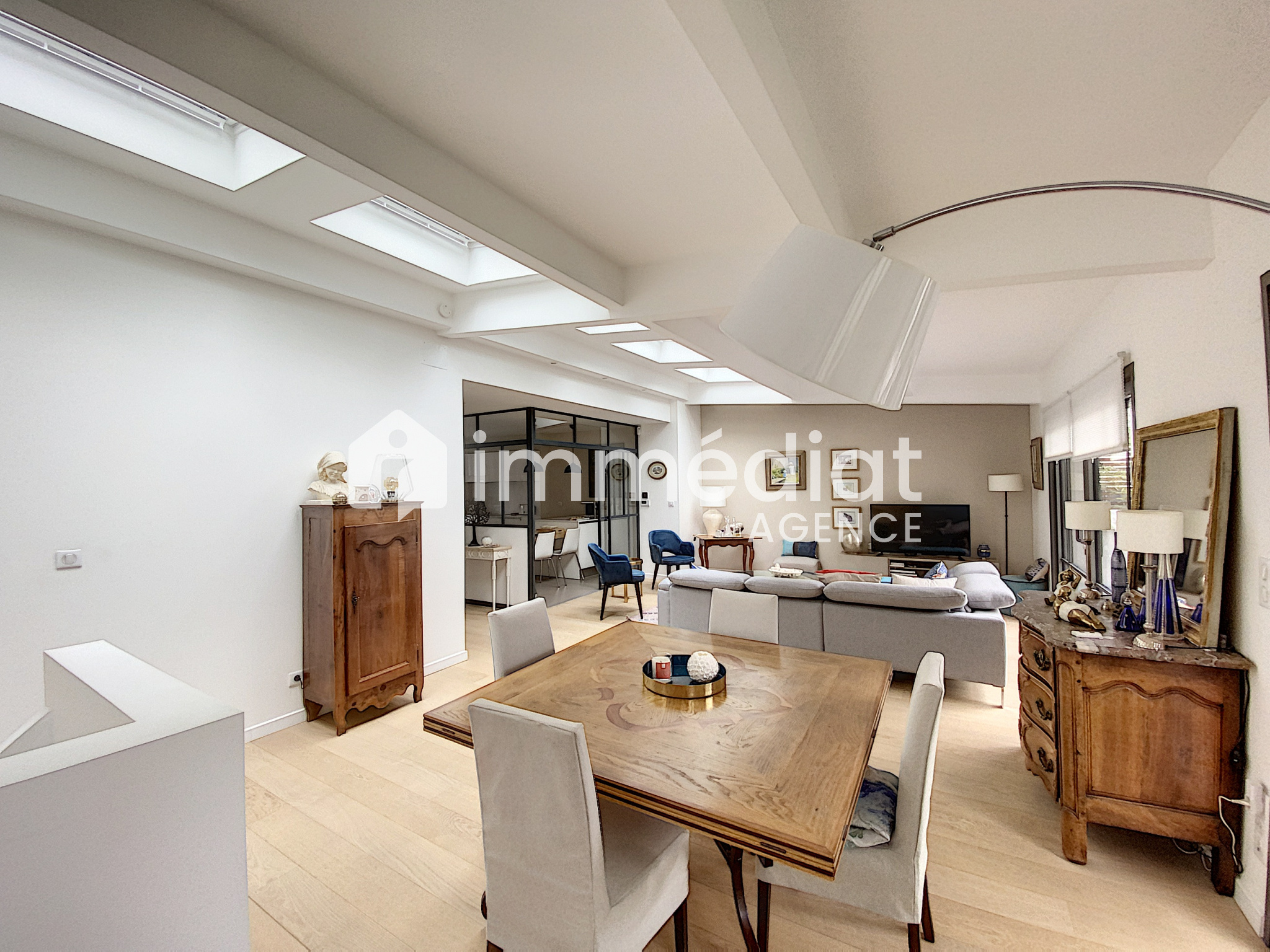 La verrière d'une grande cuisine dinatoire ouvre sur un grand séjour de 43 m² qui se prolonge sur jardin et terrasse.