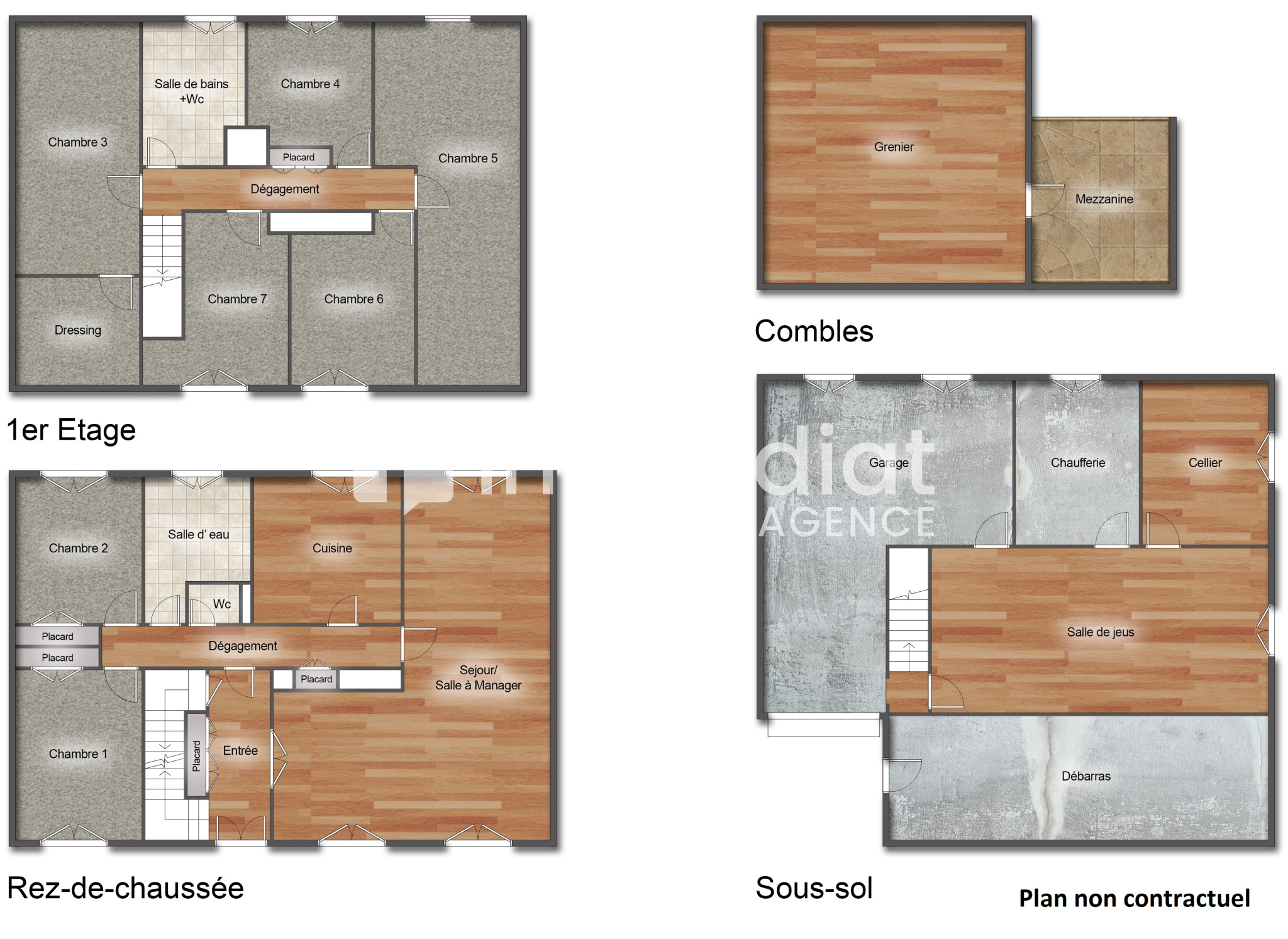 Au 2eme niveau: 5 chambres dont une avec mezzanine, un dressing, une salle de bains.