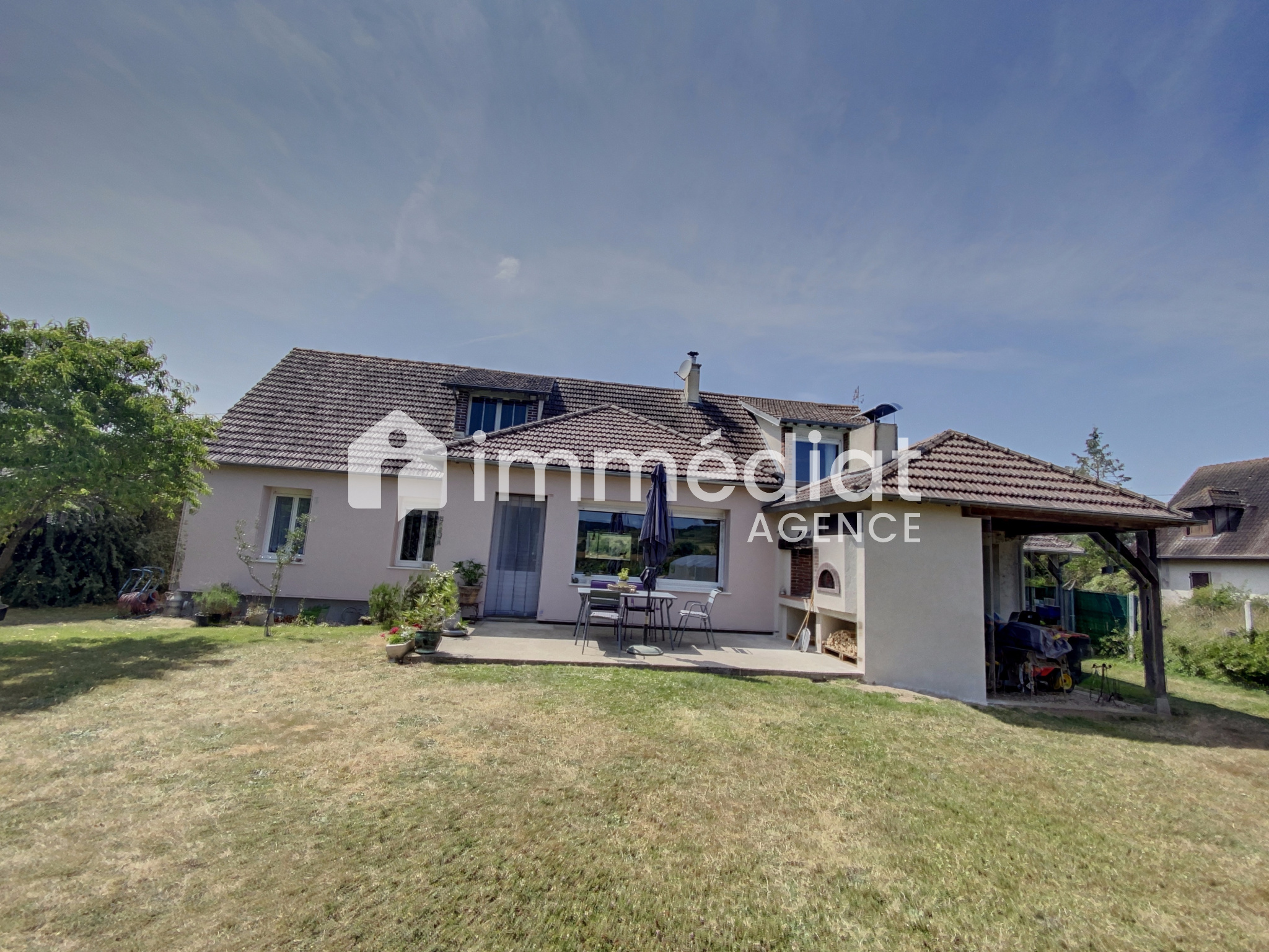La maison bénéficie d'une isolation par l'extérieur réalisée en 2023 et d'une pompe à chaleur.Un grand garage ,2 carports, un abri de jardin complètent le bien.