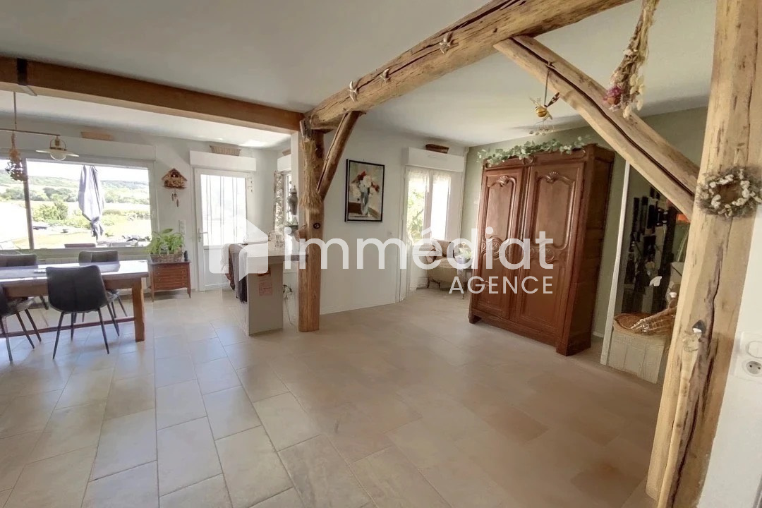 Garennes-sur-Eure (27780)A 85 kms de Paris et 25 kms de Mantes, situation exceptionnelle pour cette maison de charme les pieds dans l'eau, comprenant un grand sejour ouvrant sur la terrasse avec barbecue et four à pizza ,3 chambres dont 2 de plain pied et 1 à l'étage, 1 salle de bains et une salle d'eau. Possibilité d'aménager les 56 m² de combles restants pour refaire chambres et sanitaire.